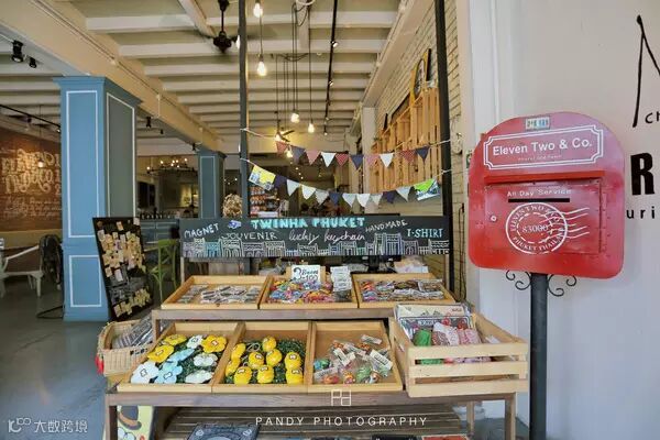小店门口的红色邮筒正是普吉镇上的邮筒样貌,但被制作的更精致一些,可以方便顾客留影,也可以直接在这里将明信片寄出。