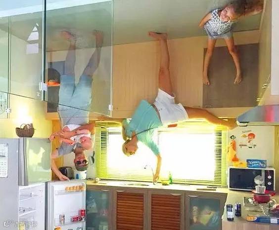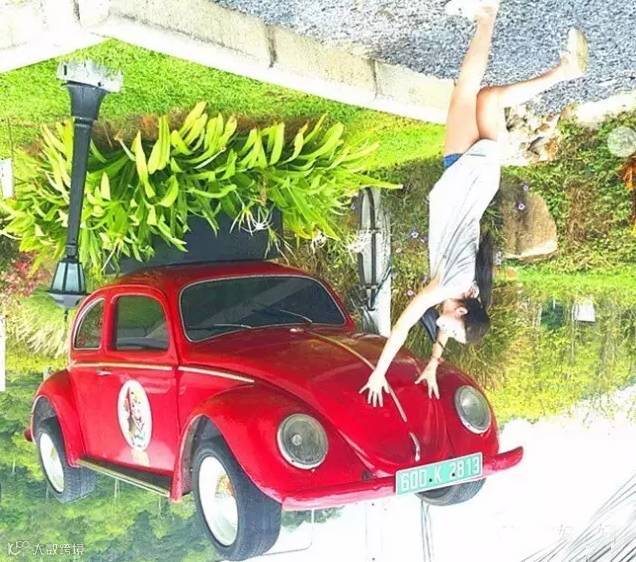 游客们一入颠倒屋,感受到熟悉的日常事物竟然大不相同了;人们感觉到打破习惯角度看世界真是不习惯呢!到底是被谁颠倒了呢?无论如何,拍张照吧!看起来像飞天照、吸顶功一般的逗趣照片,也是一种引人缪思的奇趣!