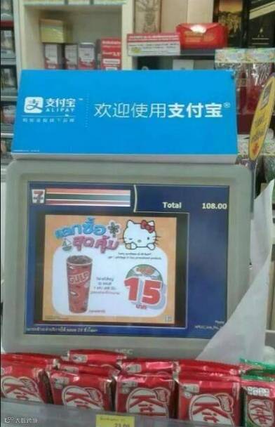 10月初,泰国开泰银行宣布和微信支付强强联合,正式启动双方在泰国移动支付市场合作。拥有全泰国最大刷卡机保有量的开泰银行将全面升级20多万合作商家的刷卡机以便满足中国游客在泰国购物时使用微信支付的需求。商家只要利用开泰银行带有扫描二维码功能的刷卡机扫一下买家微信支付里的二维码就可以轻松实现即时支付。