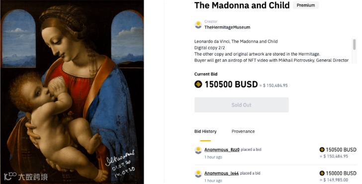 冬宫博物馆拍卖的 The Madonna and Child NFT,筹到了将近 45 万美元|图源:腾讯网