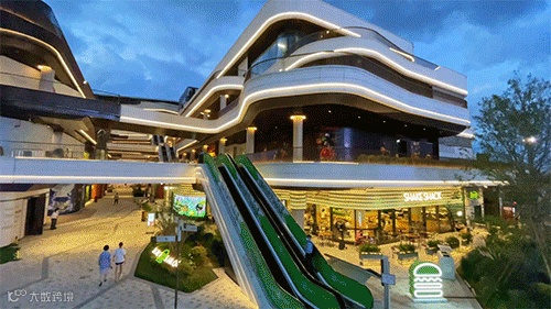 开业后前滩太古里的亮点之一就是一条全长450米、环绕四楼屋顶一周的“天空环道”(Sky Loop)。“天空环道”由专业跑道和散步道组成,是上海首创的商场AI智能跑道,通过人脸识别技术记录运动数据,沿途还设置了设施齐备的智能更衣室和淋浴间,另有部分缓坡升至茑屋书店屋顶,提供富有趣味和挑战的运动环境。