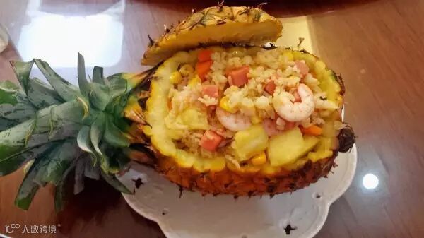 泰式菠萝饭以炒为主,菠萝饭诱人的口感和颜色都让人流连忘返,选用新鲜的菠萝掏空,然后将菠萝果肉炒入泰式香米饭当中,使得炒饭的风味独特,口感鲜甜,看上去很色香味俱全。