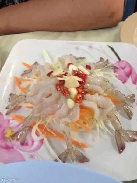 选用了活虾去壳,口感非常新鲜,配上了秘制蘸酱,以及辣椒丁,蒜头片,洋葱粒,香茅片等各种天然香料和虾包在一起享用,入口层次和味道都非常特别。
