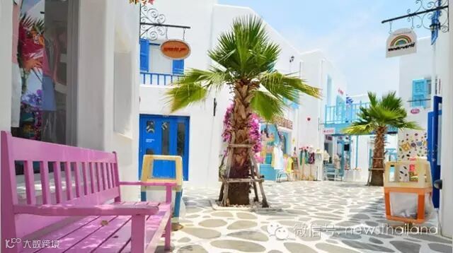 还来不及飞往那个梦幻的国度--希腊去度假的话,有个离我们还不算太远的地方值得我们先去探寻那蓝白世界的魅力--圣托里尼乐园,又称“小希腊”,位于距离泰国华欣约半小时车程的七岩。整座园区的建筑风格模仿希腊爱琴海小岛圣托里尼,漫步其间犹如置身岛上,浪漫又惬意。街道区旁的大广场上,矗立着40米高的摩天轮,登上摩天轮升到高空,整个海滩美景尽收眼底。