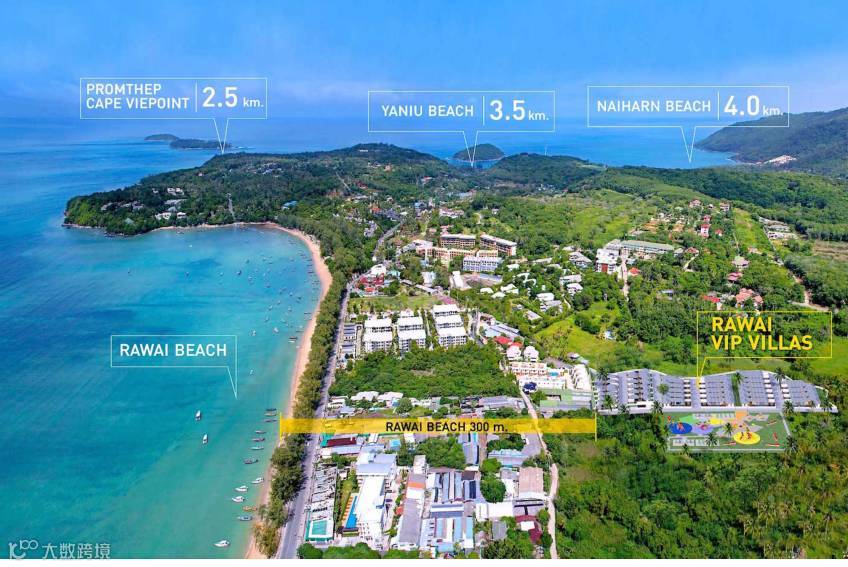 该项目位于普吉岛南部,离海滨300米。拉威海滩非常平静,没有暴风的侵扰,拥有船舶码头,可全年停靠。5至7公里半径范围内有超市、购物中心、学习和幼儿园。
