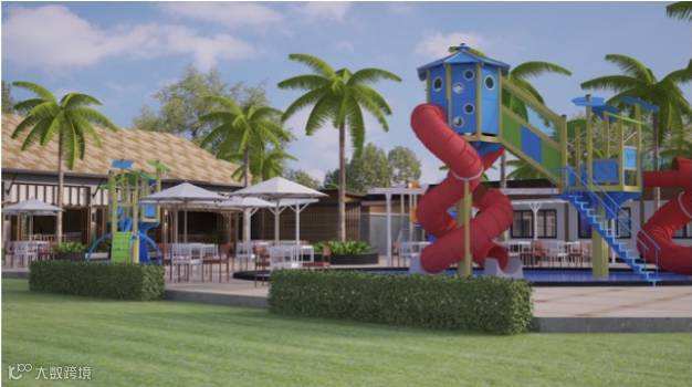 在3,200平方米的面积上,将建带儿童游乐场的公园、水景、咖啡馆和参观、环绕在热带绿树丛中的步行小径。公园开发将与一期同时在2015年五月完工。