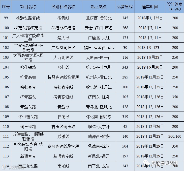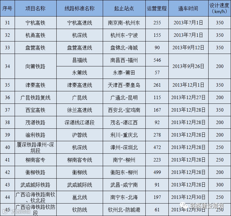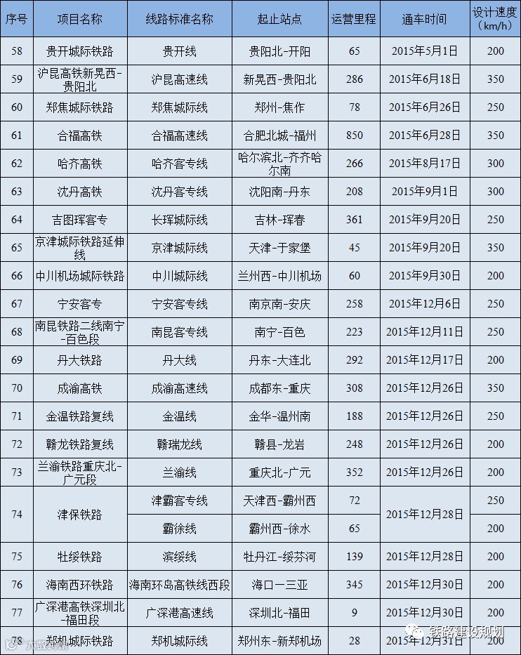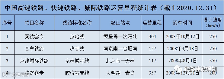 6、沪昆、京广、京沪、汉丹、陇海、宁启、鹤岗等既有线部分路段提速改造到160-200公里的段落未纳入统计范围。
