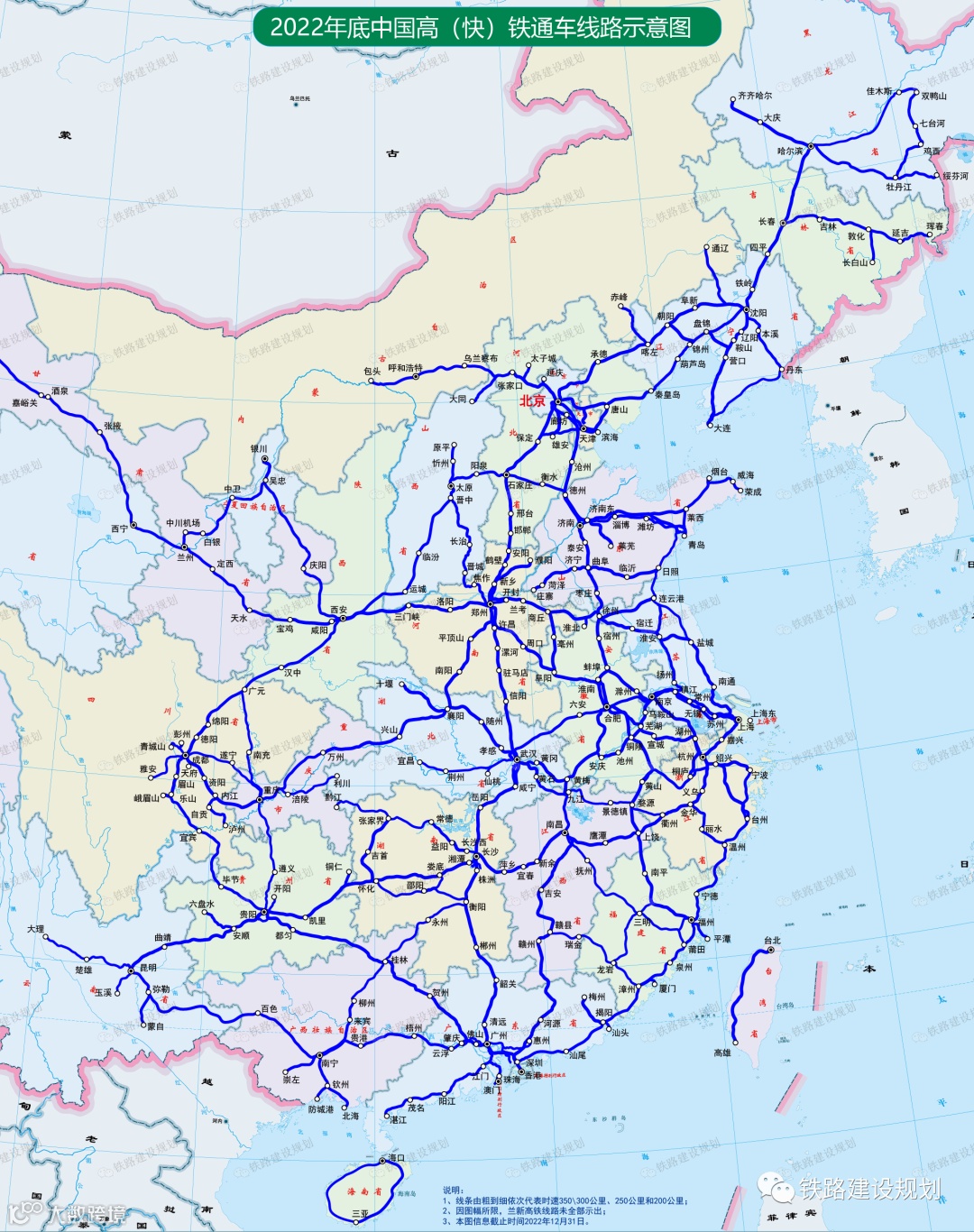 1、统计范围包括设计时速250-350公里的准高铁(技术型高铁)、设计时速200公里的客货共线铁路(路网型高铁)及都市圈城际铁路,城际铁路不包括地铁制式的城际轨道交通及市域(郊)铁路。
