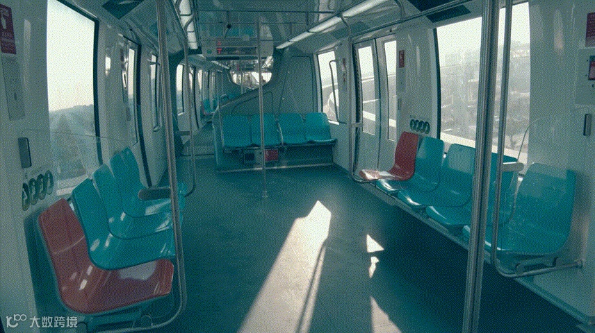 跨座式单轨列车可以按全自动运行模式运行,最高运行速度可达80公里每小时,非常适合在城市里穿梭运行。列车车头,也就是司机室,是跟客室是联通在一起的。