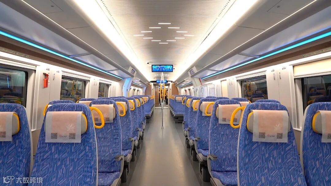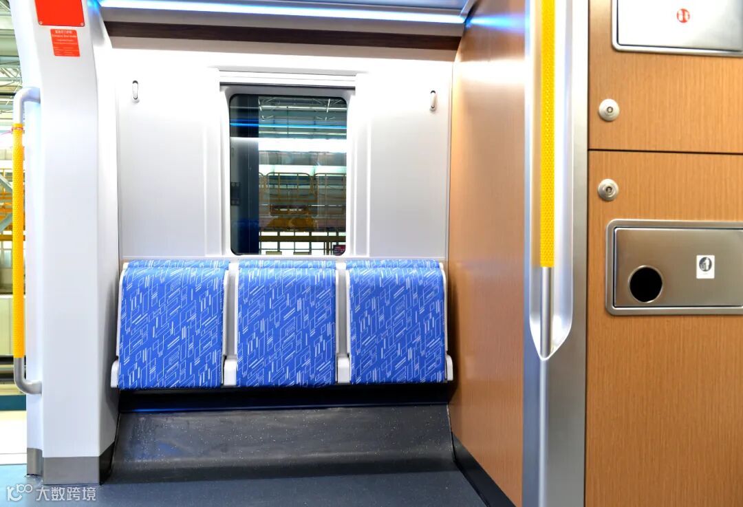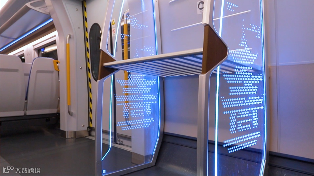列车在门区、端部、车顶以及座椅顶部等多处设置舒适的扶手,提升客流量较高时乘客的舒适度。