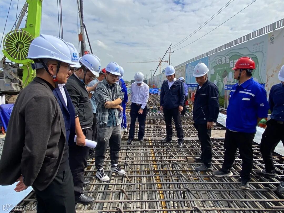 在枫南线嘉兴南站项目施工现场,项目监理、设计等单位对首幅地下连续墙钢筋笼进行了分析与评估。