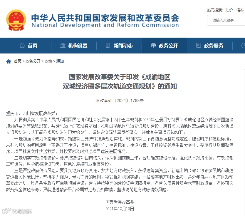 聚焦“外建大通道、内建大网络、共建大枢纽”,重庆“轨道上的都市区”、成都都市圈在轨道交通的牵引下加速交融。