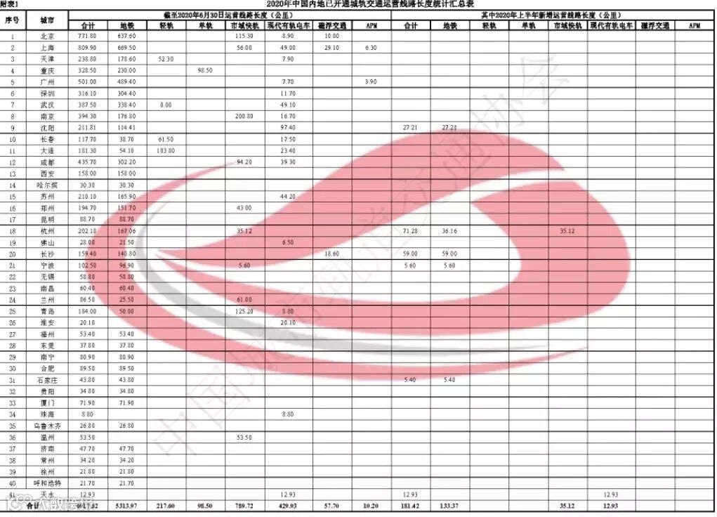 下面是中国城市轨道交通协会,发布的2020年上半年内地城轨交通线路情况: