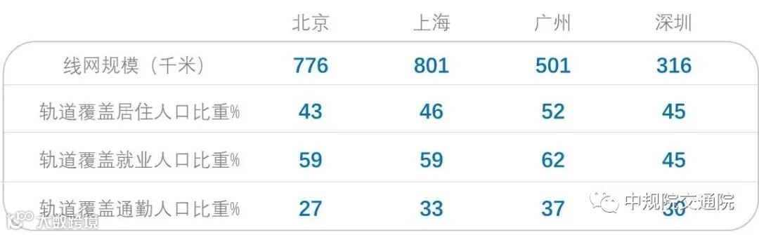 该报告统计了家和就业地两端均在轨道站点1公里内的通勤人口数据,然后制作了一个“全国主要城市1公里轨道覆盖统计比重”排行榜: