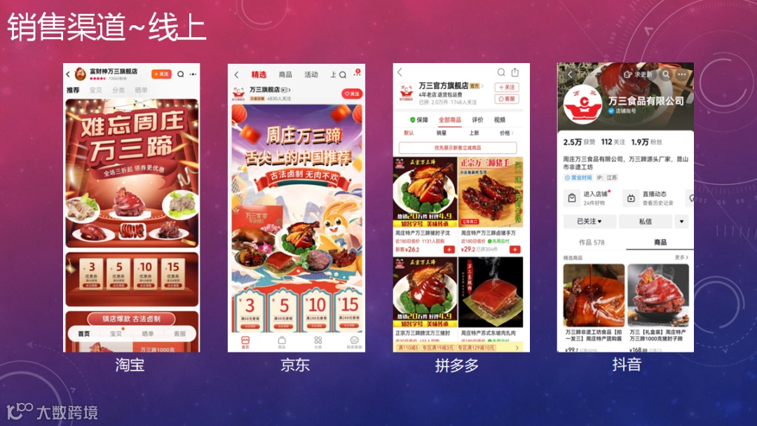 线上在拼多多、淘宝、京东、抖音等平台均有店铺,动动手指就能让美味送到家;同时还与国内100多家大卖场合沪杭、苏嘉杭高速各超市建立合作,在商超也能轻松选购。