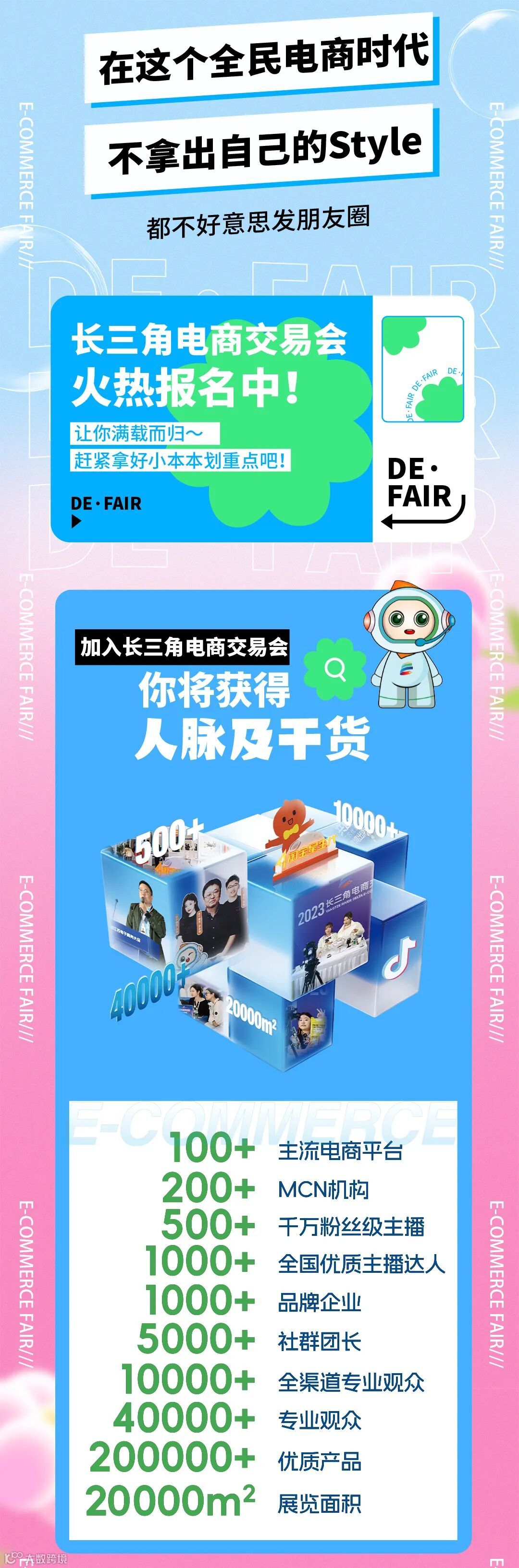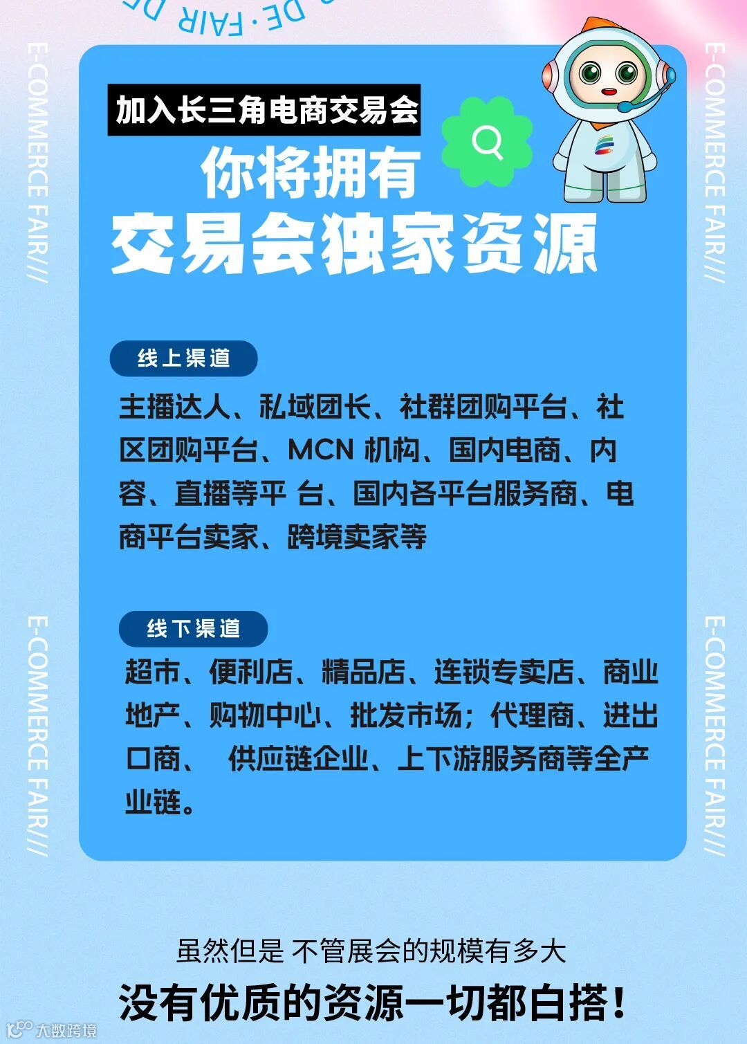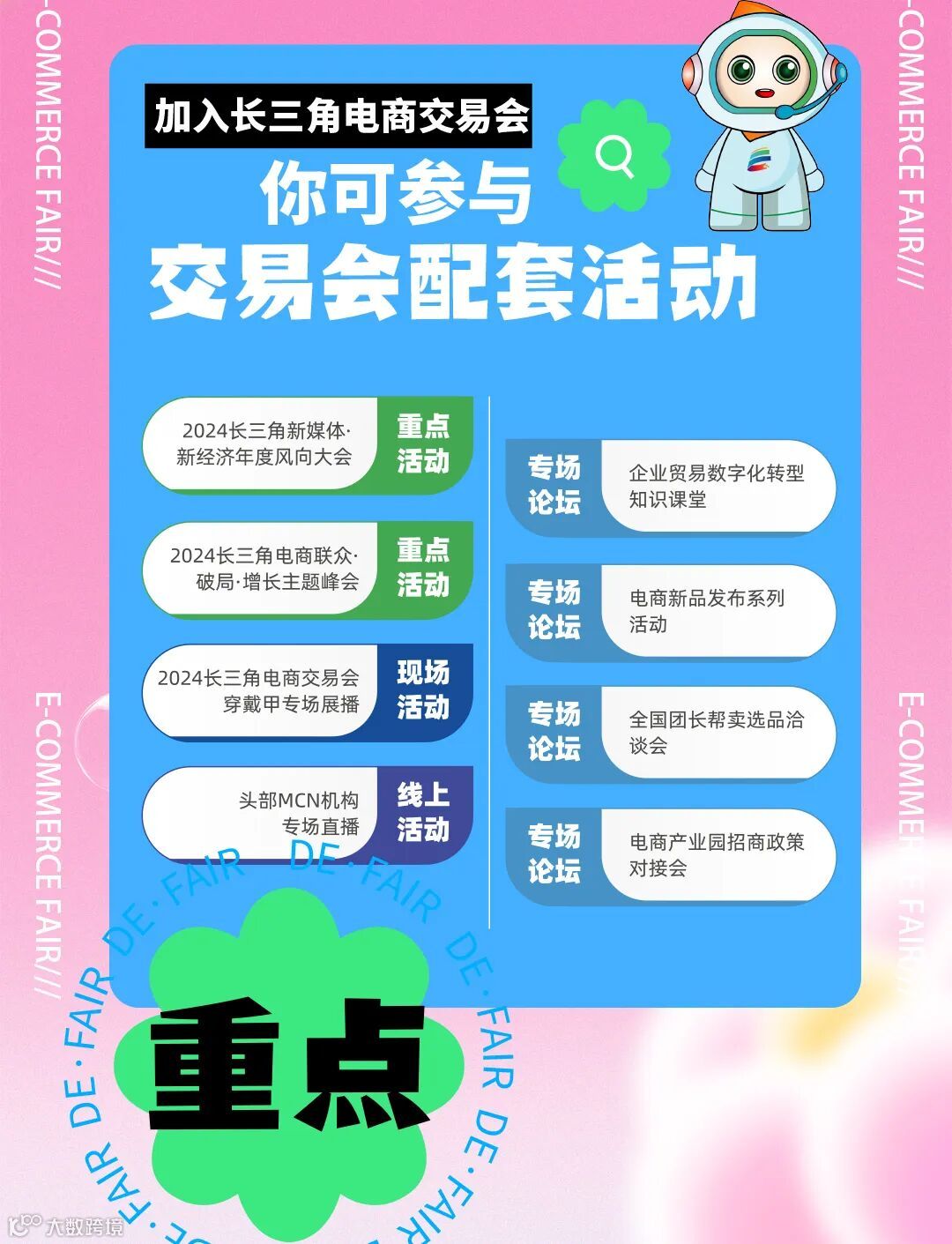 展会将围绕“商品展示+系列论坛+平台选品对接+新品爆品路演+团购渠道推品”主要内容,展示长三角地区优品、精品等特色商品,与大型综合电商平台、大团长、线下大型连锁商超5000家专业采购商进行现场选品,促进电商产业链采供双方精准高效对接