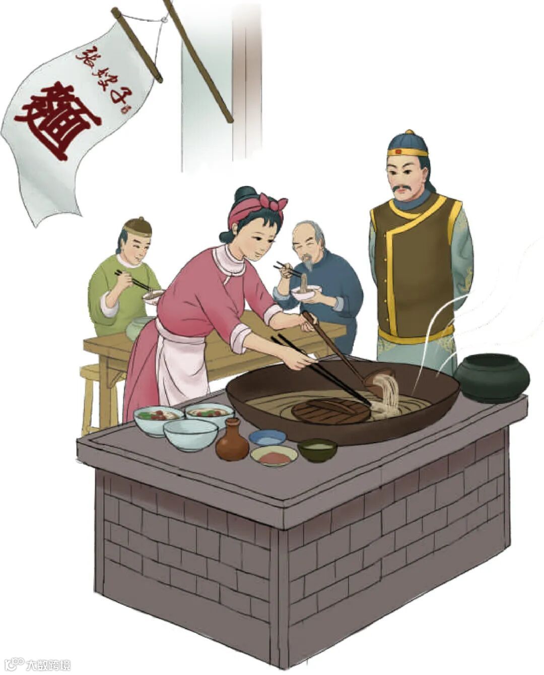 张嫂⼦镇江锅盖⾯缘由1751年,乾隆下江南到了张嫂⼦伙⾯店吃⾯,张嫂⼦⼿忙脚乱中不⼩⼼把汤罐的杉⽊锅盖滑落到⾯锅中,⽽让乾隆赞⼝不绝说,“⾯锅⾥煮锅盖,⾯条不硬不烂,好吃!”从此锅盖⾯名声⼤震,远播四海。