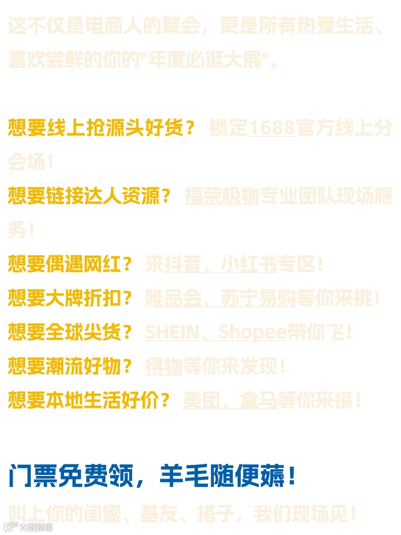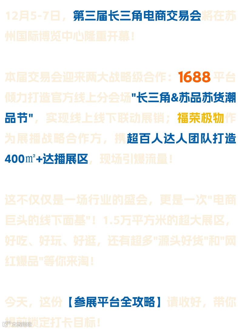 抖音:直播短视频巨头空降!现场设立超400平方米展位进行直播,并将联合福荣极物举办长三角电商流量风向标专题论坛,带你揭秘直播间背后的流量密码!