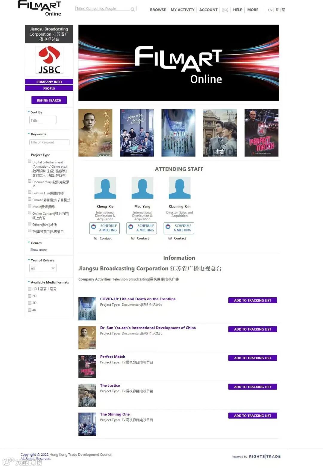 今年已经是江苏广电第十五次参加香港国际影视展,此次携多部作品参展,与全球客户就节目版权贸易、国际联合制作等方面展开洽谈,寻求国际合作,携手实现共赢。