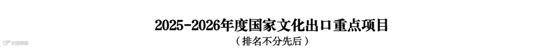 日前,由商务部、中央宣传部、文化和旅游部、广电总局共同认定的2025—2026年度国家文化出口重点企业和2025—2026年度国家文化出口重点项目正式公布。