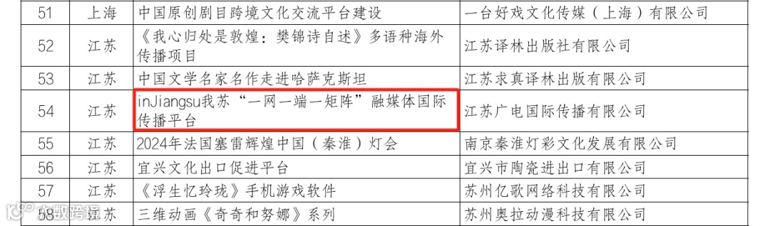 江苏广电国际传播有限公司入选2025-2026年度国家文化出口重点企业,inJiangsu我苏“一网一端一矩阵”融媒体国际传播平台入选2025-2026年度国家文化出口重点项目。