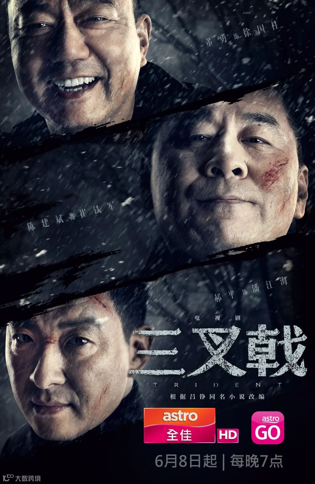 电视剧《三叉戟》根据作家吕铮同名小说改编,讲述的是三位人民警察,在面对新型犯罪,齐心合力创新侦破手段,最终一举击破金融犯罪集团的故事。三位主演之一陈建斌此前凭借《甄嬛传》在海外获得较高知名度,拥有一批粉丝,由他主演的《三国》被海外观众誉为“中国版《权利的游戏》”,在海外进一步提高了知名度。加上同为老戏骨的董勇和郝平加持,该剧强强联合的“铁三角”组合,海外观众对该剧形成了较高的期待。