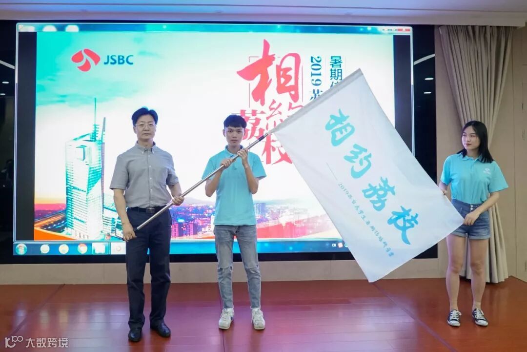 江苏省台办副主任李卫华向研习营学生代表授营旗,拉开了为期18天的实习交流活动序幕。