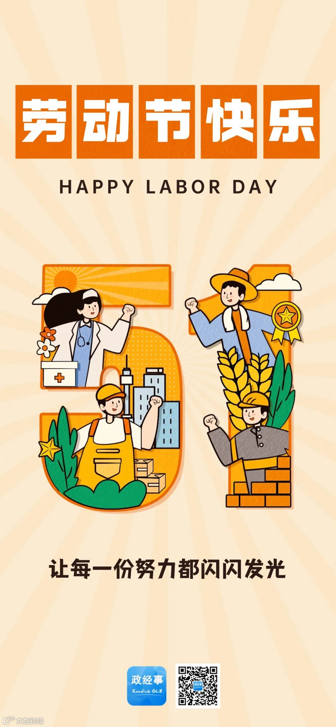 劳动奏响时代的乐章,奉献绘就美好的生活。劳动最光荣,向各行各业的劳动者致敬!政经事(Roadlink GLB)平台祝大家五一劳动节快乐!