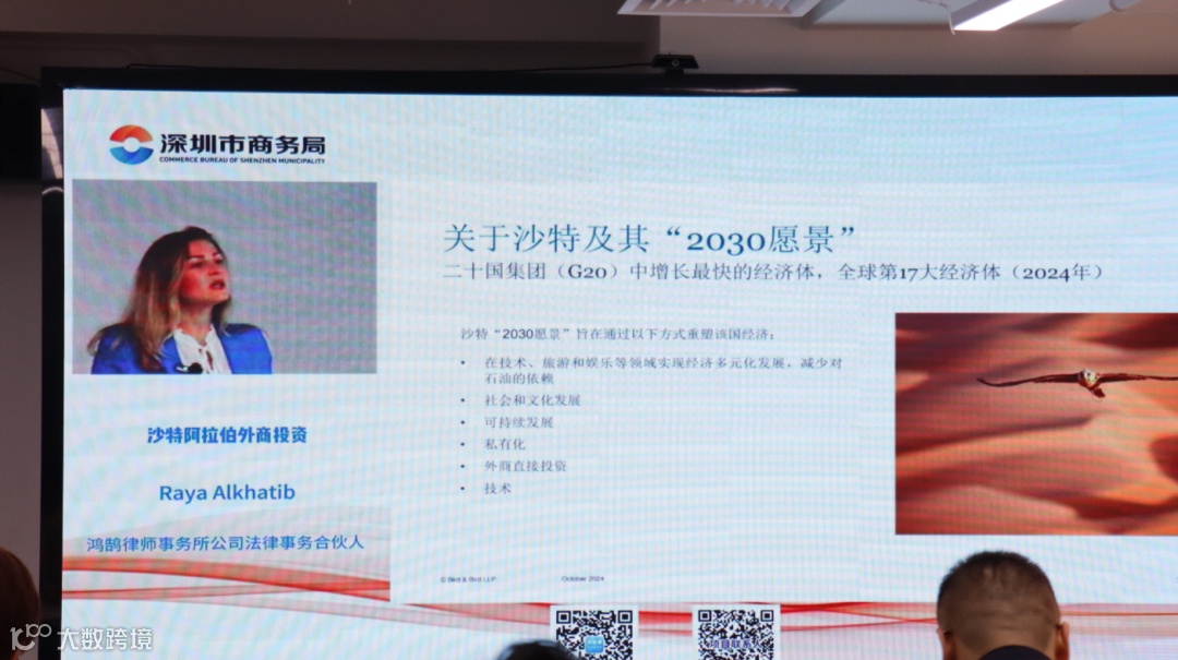 10月30日下午,由深圳市商务局主办、政经事(Roadlink GLB)平台承办、深圳市走出去战略合作联盟协办的『2024年深圳市商务大讲堂——中东投资专场宣讲会』通过线下+线上直播方式成功举办,线下50余位“走出去”企业代表嘉宾到场,线上超过7000人次观看。深圳市商务局对外合作处二级调研员周旭出席活动并致辞。我平台创始人孙天璐参加会议。