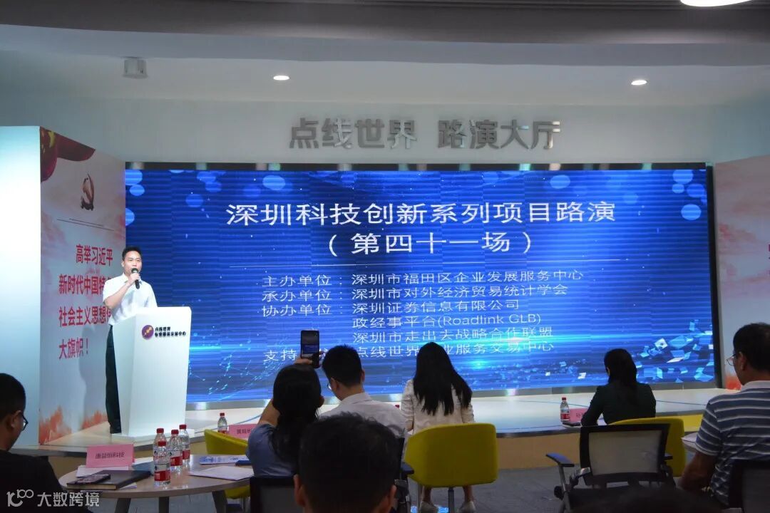 9月29日下午,由深圳市福田区企业发展服务中心主办,深圳市对外经济贸易统计学会承办,深圳证券信息有限公司、深圳市走出去战略合作联盟与政经事平台(Roadlink GLB)协办的『深圳科技创新系列项目路演第四十一场』在深圳市福田区点线世界专业服务交易中心路演大厅顺利举行。