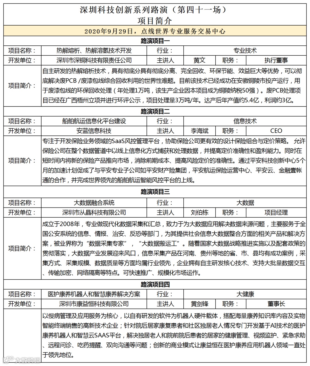 『深圳科技创新系列项目路演第四十二场』将于2020年10月27日举办,欢迎各投资机构及有需求的企业及创新团队随时关注报名并与我们联系、推荐优秀项目。