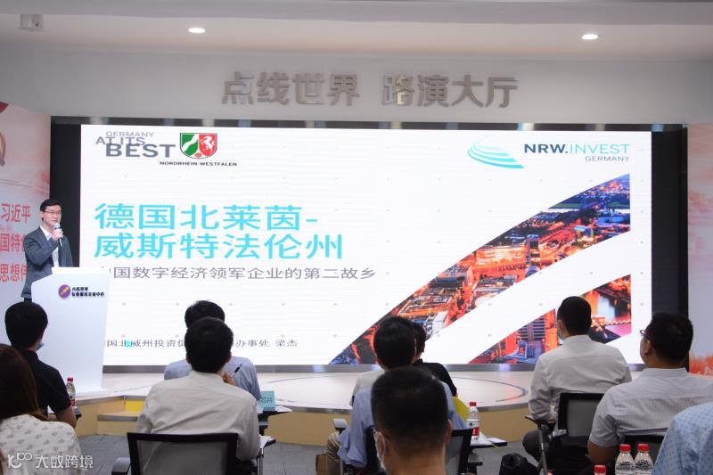 首先由德国北威州投资促进署广州办事处主任梁杰从德国北威州的人才资源、区位优势和国际化视野以及营商环境这四个方面作介绍。