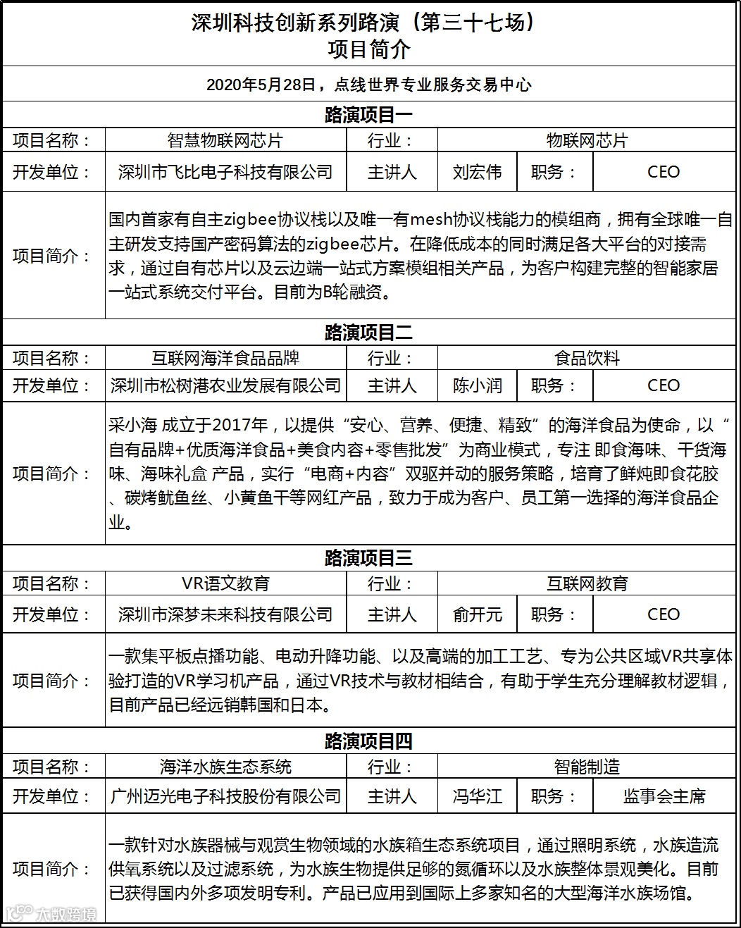 ▲ 图为本次路演4个项目简介