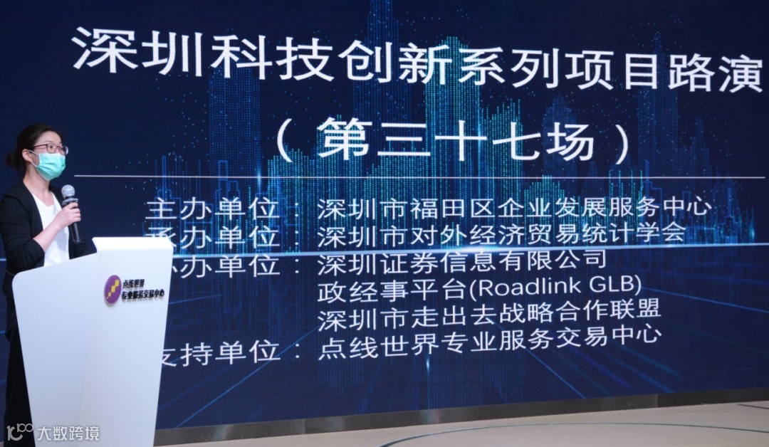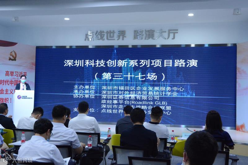 5月28日下午,由深圳市福田区企业发展服务中心主办,深圳市对外经济贸易统计学会承办,深圳证券信息有限公司、深圳市走出去战略合作联盟与政经事平台(Roadlink GLB)协办,点线世界专业服务交易中心支持的『深圳科技创新系列项目路演第三十七场』在深圳市福田区点线世界专业服务交易中心顺利举行。