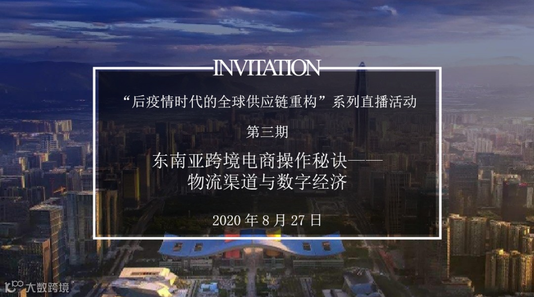 2020年8月27日,由香港贸易发展局、深圳市走出去战略合作联盟、深圳市国际交流合作基金会联合举办『“后疫情时代的全球供应链重构”系列直播活动第三期:东南亚跨境电商操作秘诀——物流渠道与数字经济』即将线上直播。欢迎有意参加的企业点击下方“阅读原文”或扫描下方二维码填写报名信息。
