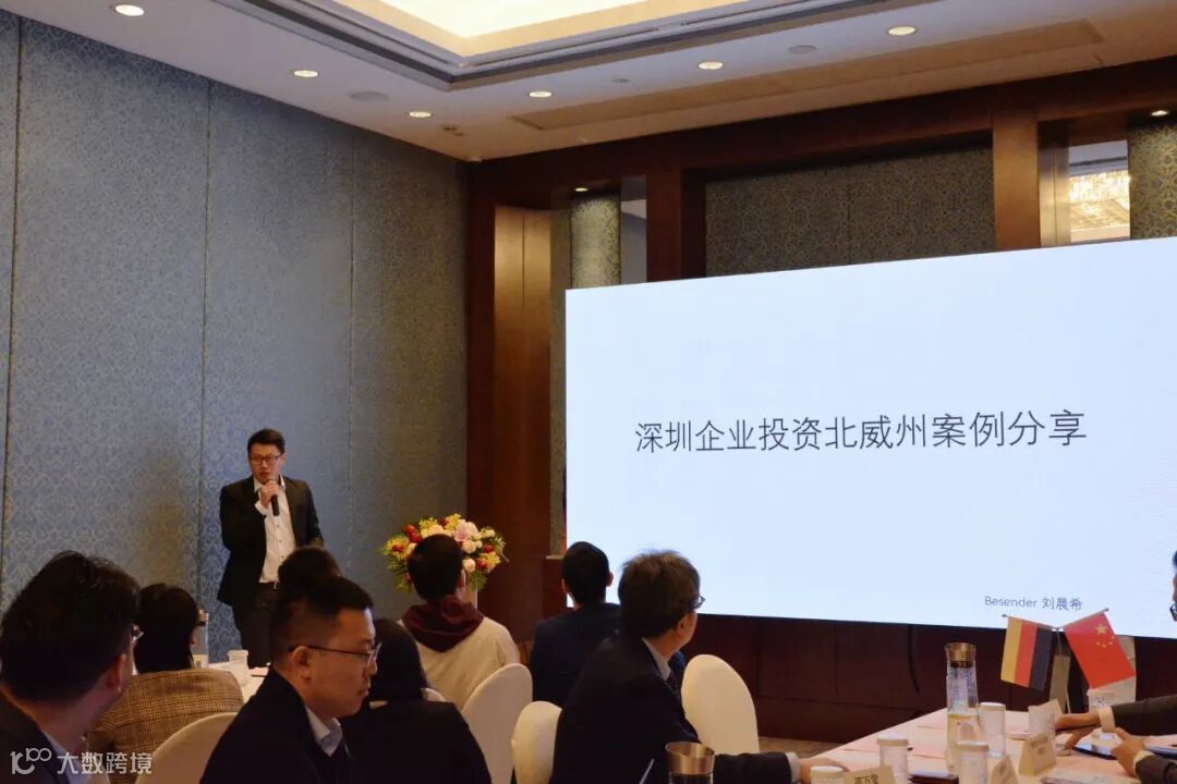 来自彼森德全球售后有限公司合伙人刘晨希先生分享了深圳企业投资北威州案例。这些案例向参会者展示了北威州制造业和服务业的优势,并与与会者进行了深入的交流。通过这些介绍和交流,与会者对北威州的投资和贸易领域有了更为全面和深入的了解。