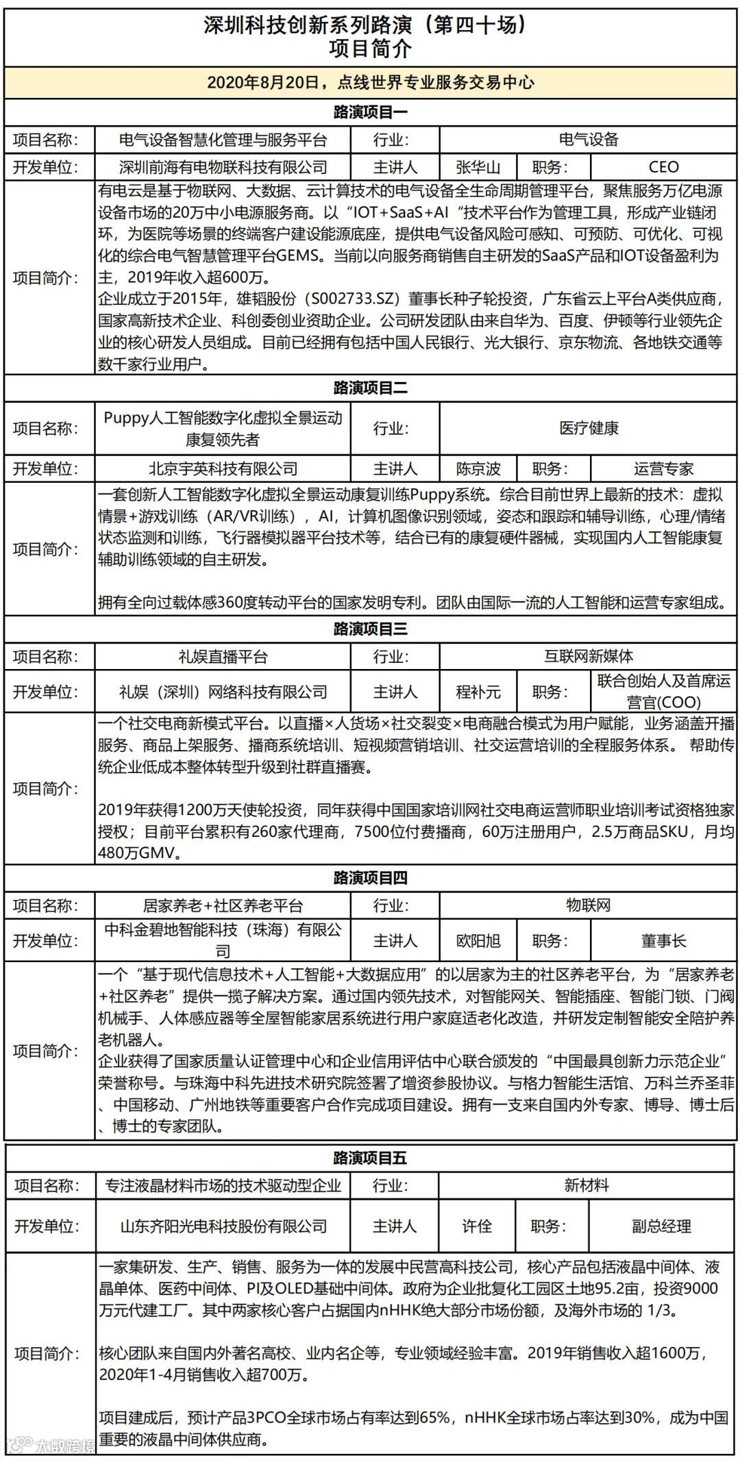『深圳科技创新系列项目路演第四十一场』将于2020年9月举办,欢迎各投资机构及有需求的企业及创新团队随时关注报名并与我们联系、推荐优秀项目。