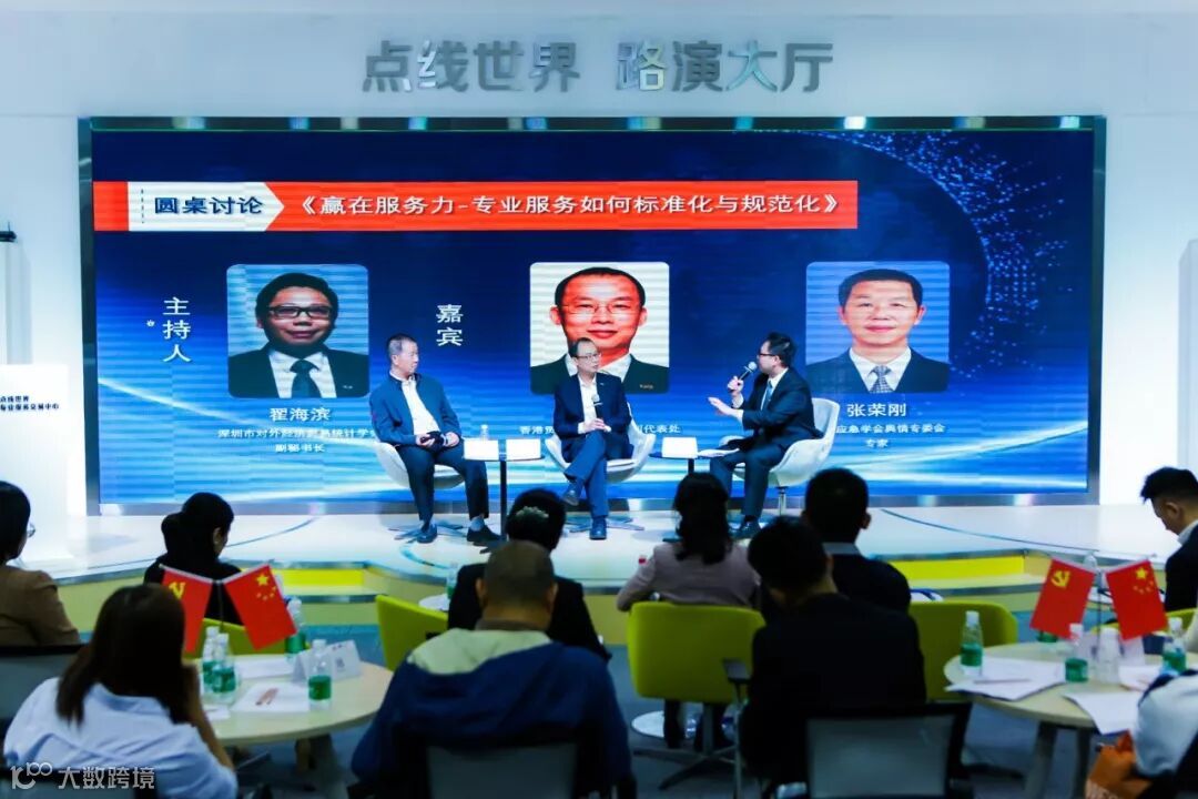 圆桌讨论环节由深圳市对外经济贸易统计学会副秘书长翟海滨主持,围绕主题《赢在服务力-专业服务如何标准化与规范化》展开分享。香港贸易发展局驻深圳代表处首席代表曾沂靖从如何积累资源、善用资源来提供增值服务等进行分享;中国应急学会舆情专委会专家张荣刚从企业应建立、梳理危机应急预案处理程序的标准化、规范化等进行分享。