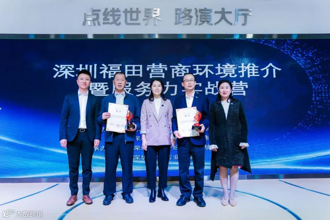 由深圳市福田区企业发展服务中心副主任黎祺瑛、政经事平台(Roadlink GLB)创始人/CEO孙天璐、深圳市饭店业协会秘书长马宁为香港贸易发展局驻深圳代表处首席代表曾沂靖及中国应急学会舆情专委会专家张荣刚两位导师颁发聘书和奖杯。