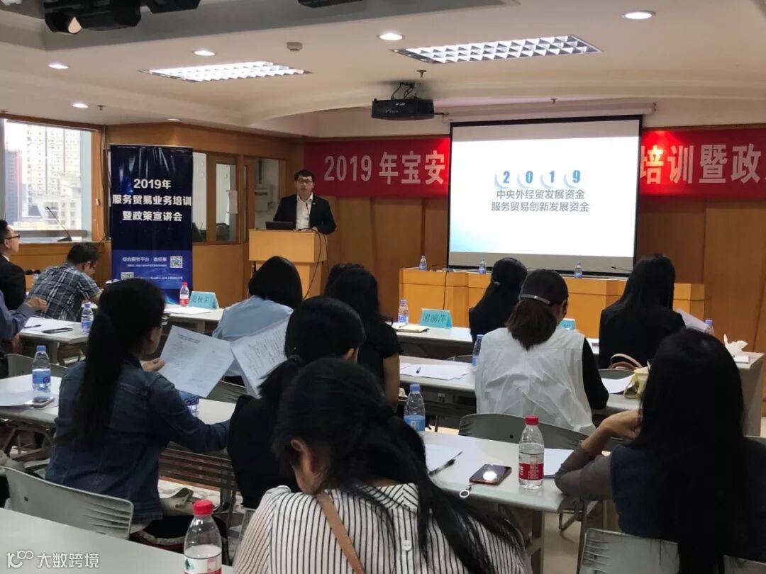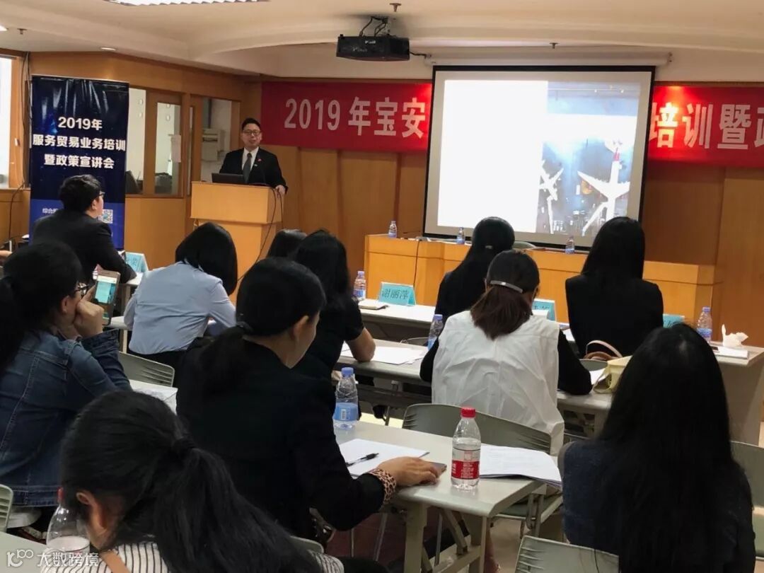 11月12日,由深圳市宝安区工业和信息化局主办,深圳市对外经济贸易统计学会承办,政经事平台(Roadlink GLB)、深圳市走出去战略合作联盟协办的『2019年宝安区服务贸易业务培训暨政策宣讲培训会』在深圳市宝安区新安三路海关大厦13楼会议室顺利举办。