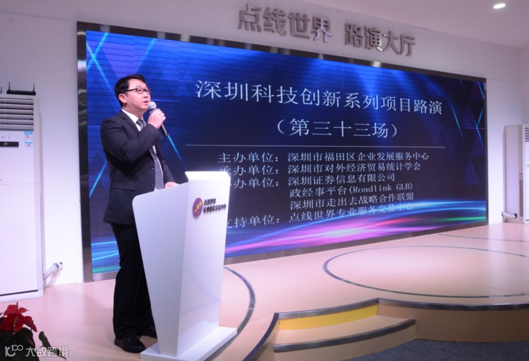11月20日14:30,由深圳市福田区企业发展服务中心主办,深圳市对外经济贸易统计学会承办,政经事平台(Roadlink GLB)、深圳市走出去战略合作联盟、深圳证券信息有限公司协办的『科技创新系列项目路演第三十四场』定于深圳市福田区点线世界专业服务交易中心路演厅举办,欢迎有意参加的企业和金融机构与我们联系。