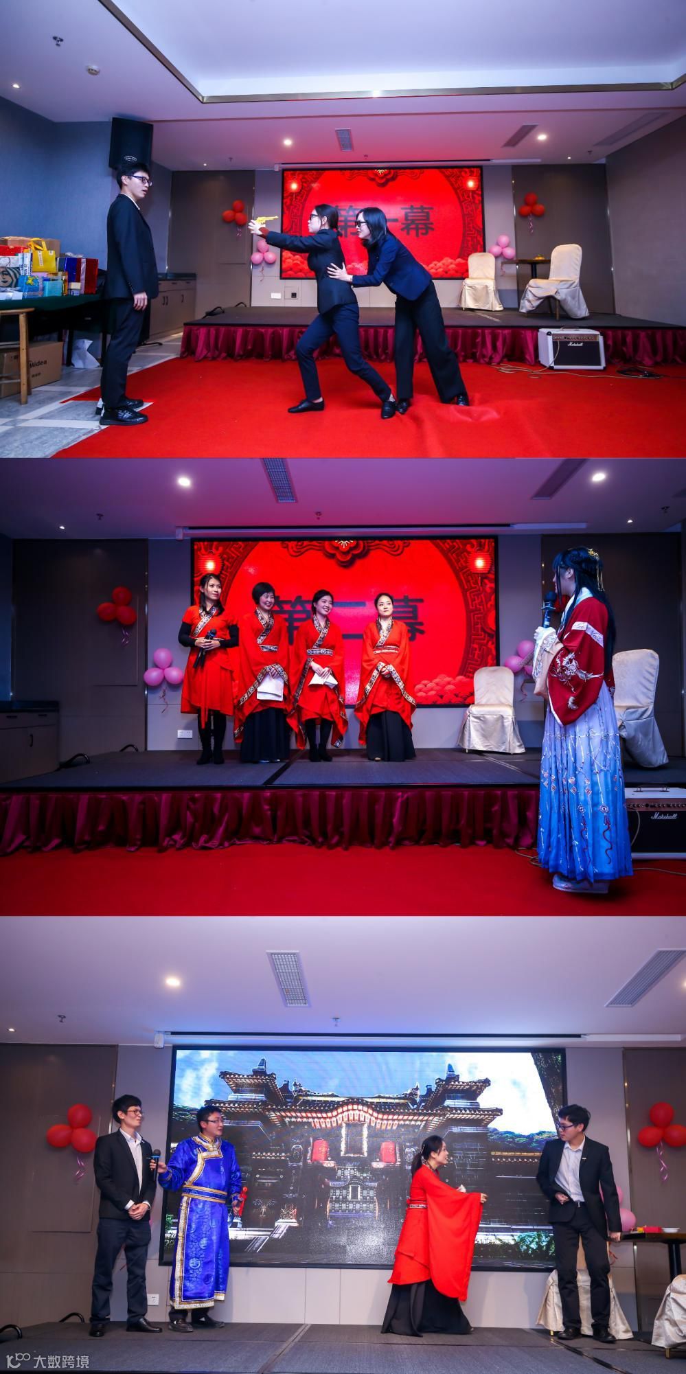 节目开始前,由政经事平台(Roadlink GLB)创始人孙天璐代表致辞,回顾过去一年取得的成绩及员工的成长进步,并向全体员工拜年。接着,政经事平台(Roadlink GLB)创始人为优秀员工颁发荣誉证书和奖励。随后,我平台领导团队与全体员工共同举杯,庆祝新年到来。年会安排了表演和抽奖,着不同民族服装的各部门员工献上了精彩表演,共度幸福快乐时光。