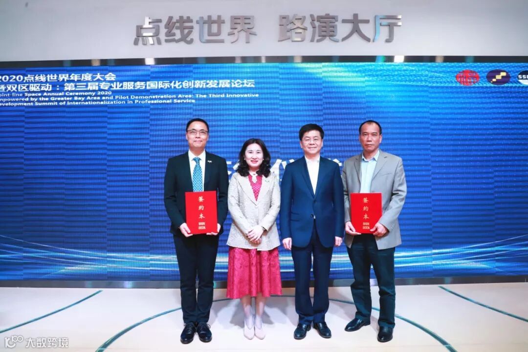 深圳市福田区企业发展服务中心委托深圳市对外经济贸易统计学会运营点线世界专业服务交易中心的续约签约仪式。