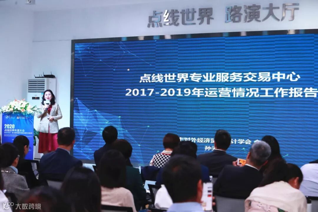 深圳市对外经济贸易统计学会会长孙天璐作《点线世界专业服务交易中心工作成果展示》汇报。在2017年-2019年举办会议活动470场,服务人次超32155人次,专业性相关主题407场,国际化相关主题72场,接待到访915次。她从拓宽服务内容,加强服务多元化;打造国际科技创新中心;培育专业化人才,打造人才高地;引进高质量专业机构,加强专业化建设;整合国际资源,加强国际化建设;加大宣传推广力度,加强点线世界品牌建设等多个方面进行总结,并就点线世界专业服务交易中心未来的六大工作展望进行介绍:打造国际科技创新发展助力工作站、知识产权保护工作站、技术服务和国际质量对接工作站、国际贸易融通工作站、全球商协会和投资资源服务工作站、综合大数据工作平台。