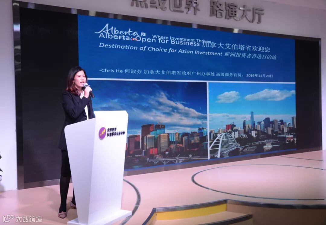 ▲ 图为加拿大艾伯塔省政府广州办事处高级商务官员何淑芬作加拿大艾伯塔省投资环境介绍