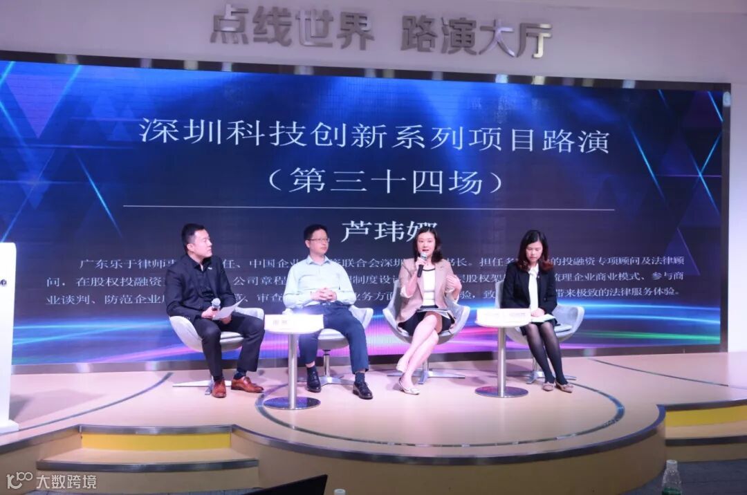 圆桌点评交流环节,由深圳市走出去战略合作联盟副秘书长周刚主持,首先是深圳市远致富海投资管理有限公司投资总监张东对路演企业从投融资的角度进行全面点评;广东乐于律师事务所主任芦玮娜从企业发展过程中涉及的法律问题做点评分析;加拿大艾伯塔省政府广州办事处高级商务官员何淑芬对初创型企业境外投资环境及企业在境外落地等问题进行分析和建议。