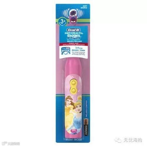 欧乐B儿童电动牙刷,适合3岁以上的小盆友学习自己刷牙使用,牙刷上印有孩子们喜欢的怪物公司卡通人物。