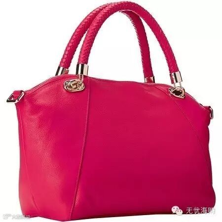 无忧海购这款可汗女士真皮手提包,采用柔软有Feel的荔枝纹真皮材质,编织风格的提手由金属锁扣连接于包身,
