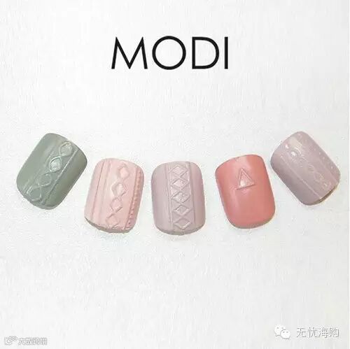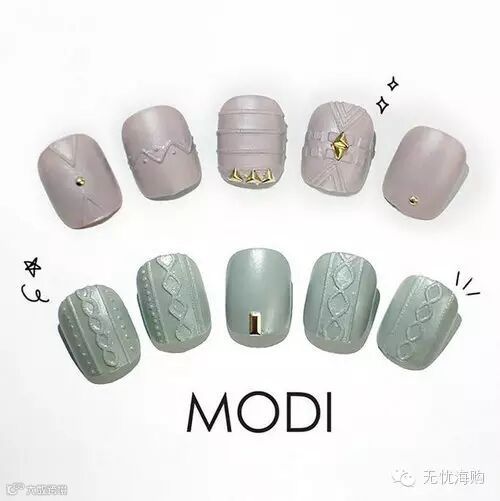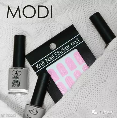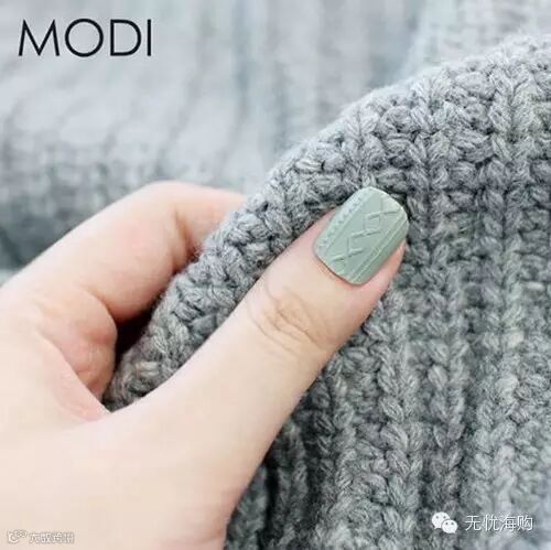 这阵“编织毛衣美甲”旋风,是由韩国美甲品牌MODI带头吹起的。看起来好像很难很复杂,其实只要准备这种模仿毛线针织图案的麻花贴纸,再备上一瓶自己喜欢的毛衣色指甲油,就能顺利完成。
