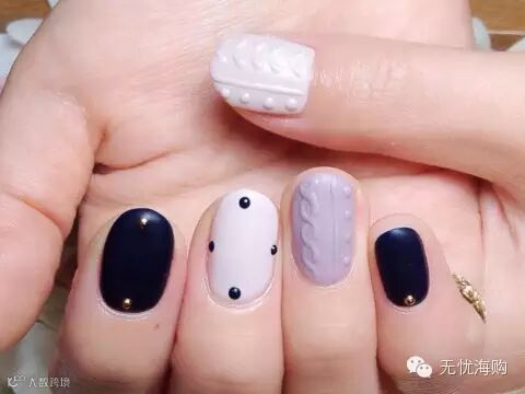 在“编织毛衣美甲”里加入其他元素,做点小小变化,看起来也非常好看!